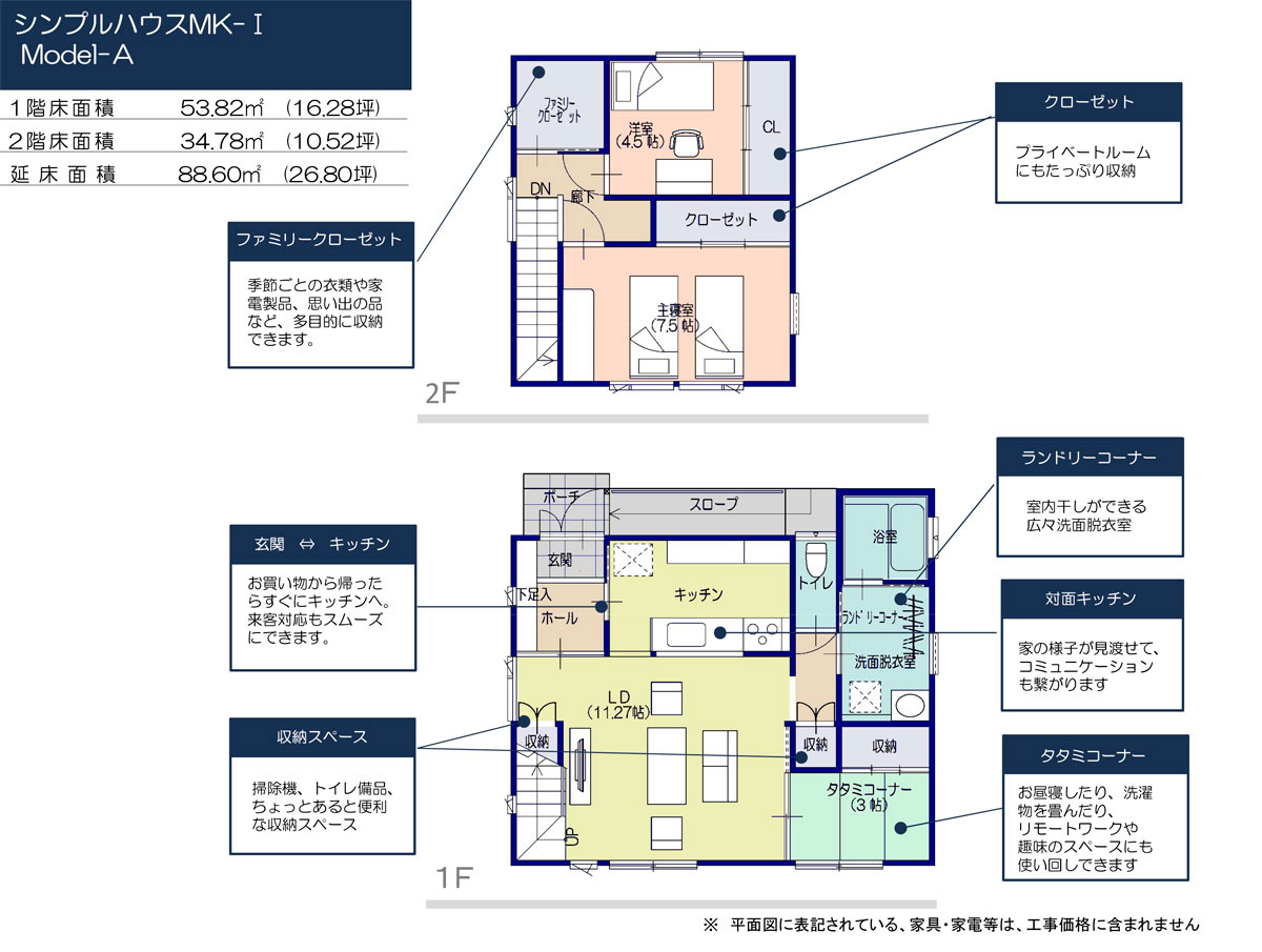 ムダを抑える。妥協はしない。ご予算に合わせて、あるいは暮らし方に合わせて間取りや設備、外観のカスタマイズも可能です。『シンプルハウス MK(マーク)』で、家族みんなが自分らしく暮らすこと。それが私たち松本工務店の願いです。